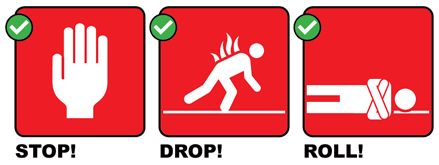 „Stop drop and roll„, mit folgenden Schritten: